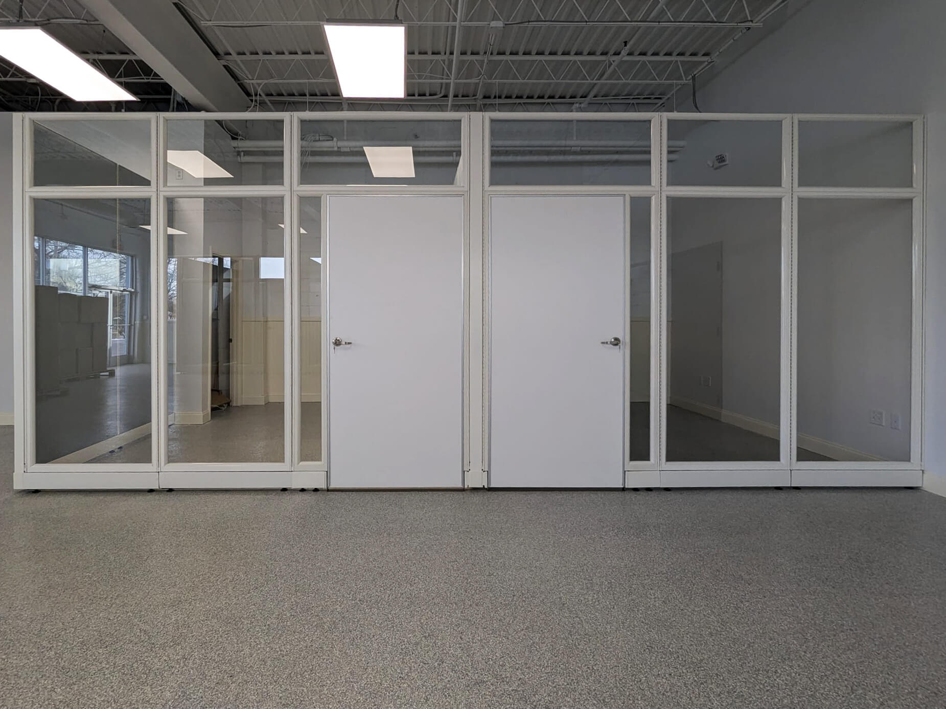 For this project, we designed and configured a versatile space featuring non-powered modular office walls. As a foremost office furniture in New Jersey supplier, our solution included three offices constructed of 10'x10'x9' high modular walls with door panels, and two enclosed spaces created with 10'x12'x9' high modular walls while implementing acoustic fabric panels as office dividers. This modular wall system provides exceptional flexibility, allowing for easy reconfiguration to adapt to dynamic office environments.