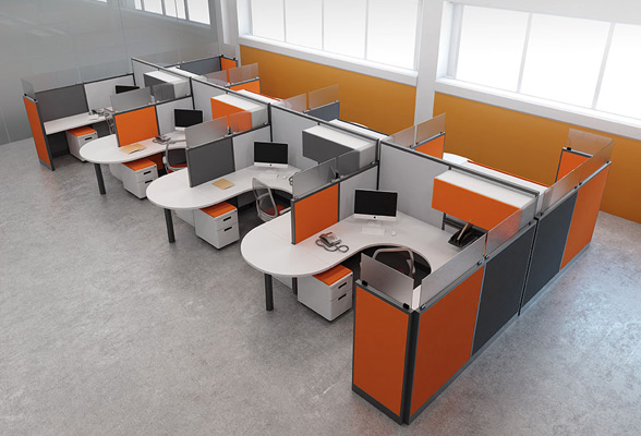 With fewer components than traditional cubicles, keep it light and airy with white or light colored finishes and select just one element for a bold flash of your corporate colors