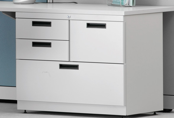 Securely store files and belongings in a filing pedestal, either 2 file drawers or 2 small box drawers and 1 file drawer. Freestanding or mobile.